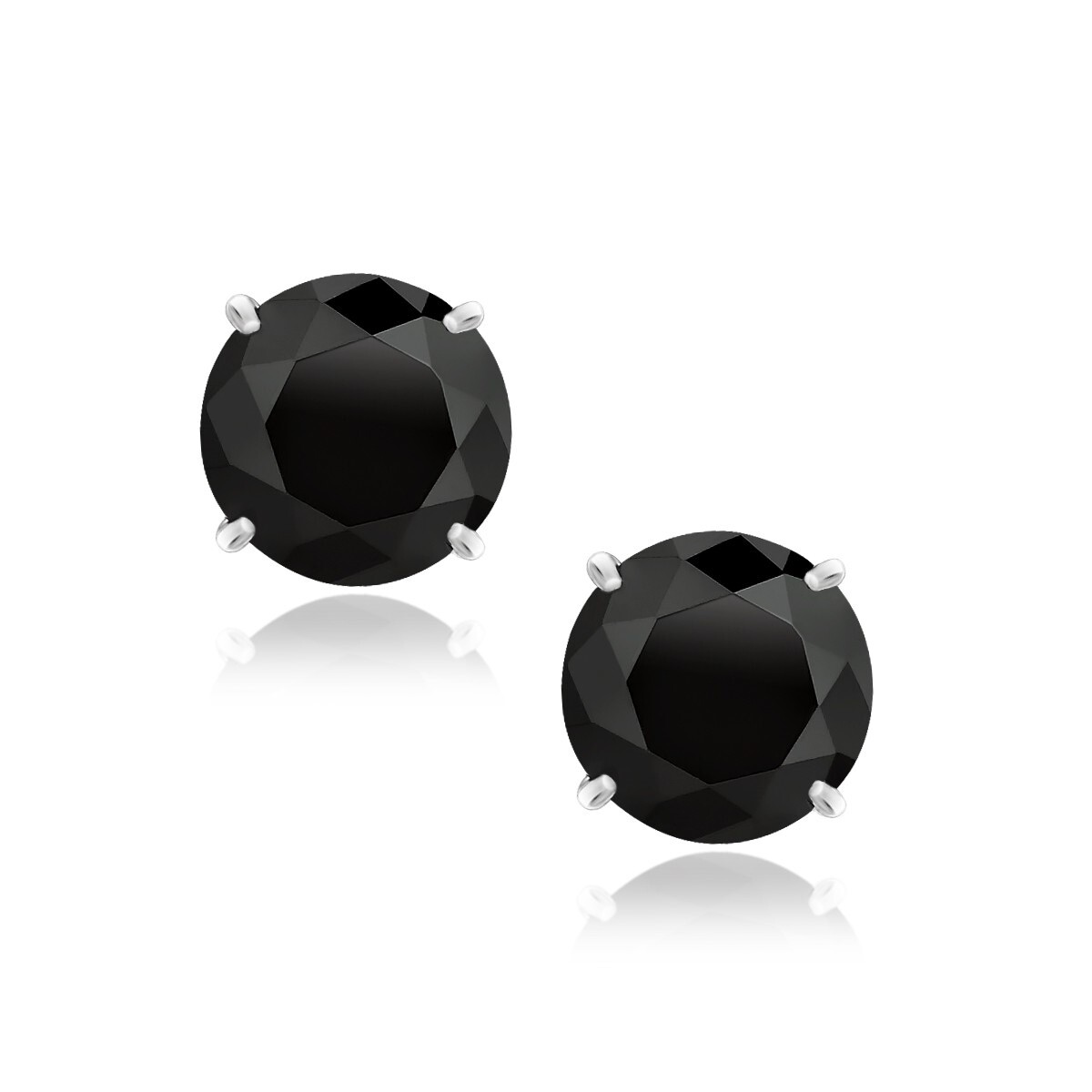 These dramatic 8.0 millimeters round black CZ sparklers make fora beautiful pair of stud earrings. Expertly crafted in 14k whitegold, they feature prong settings and push back closures.
