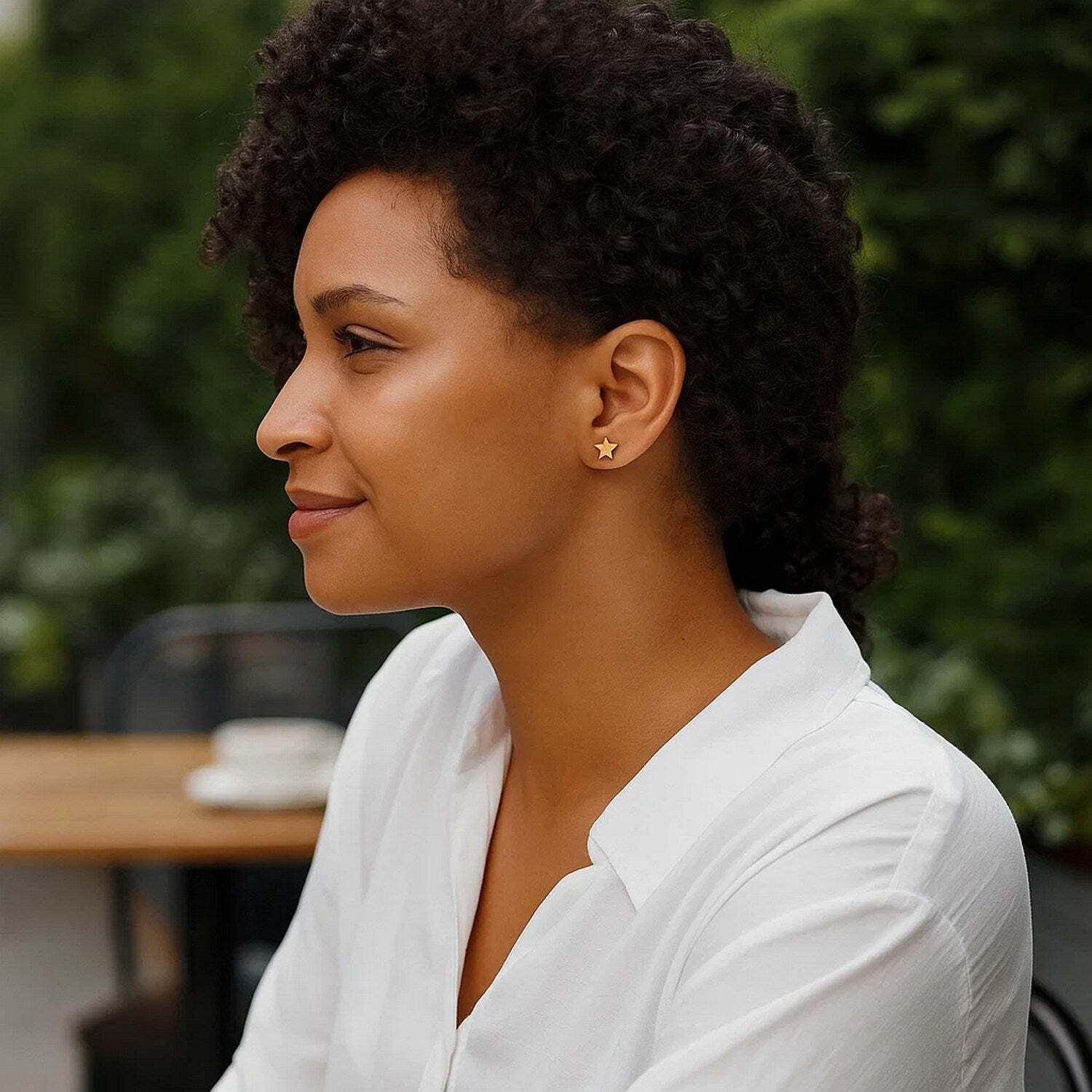 Show the world your star power with these playful 14k yellowgold post earrings. Earrings are 6.5mm wide and are held in placeby pushback clasps.