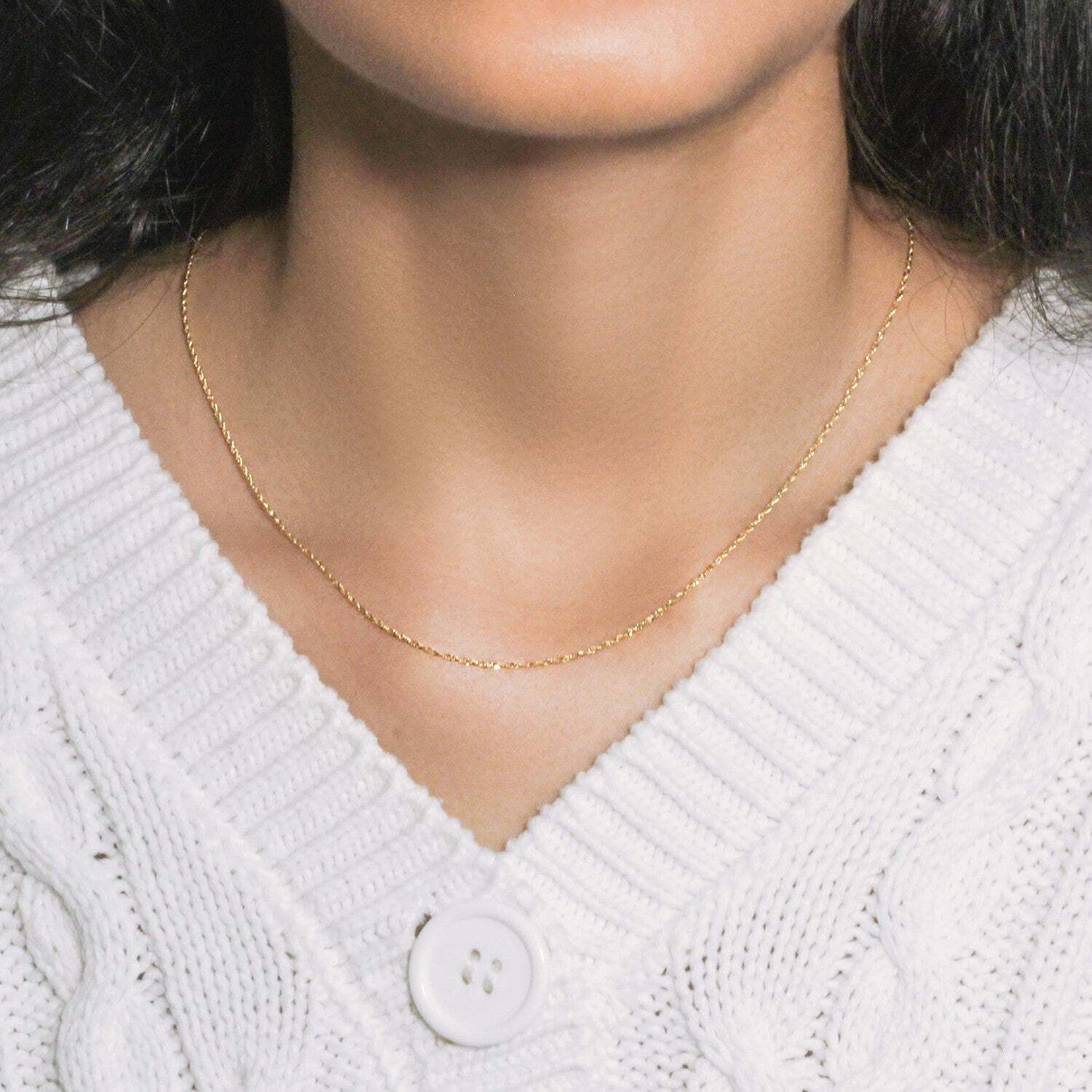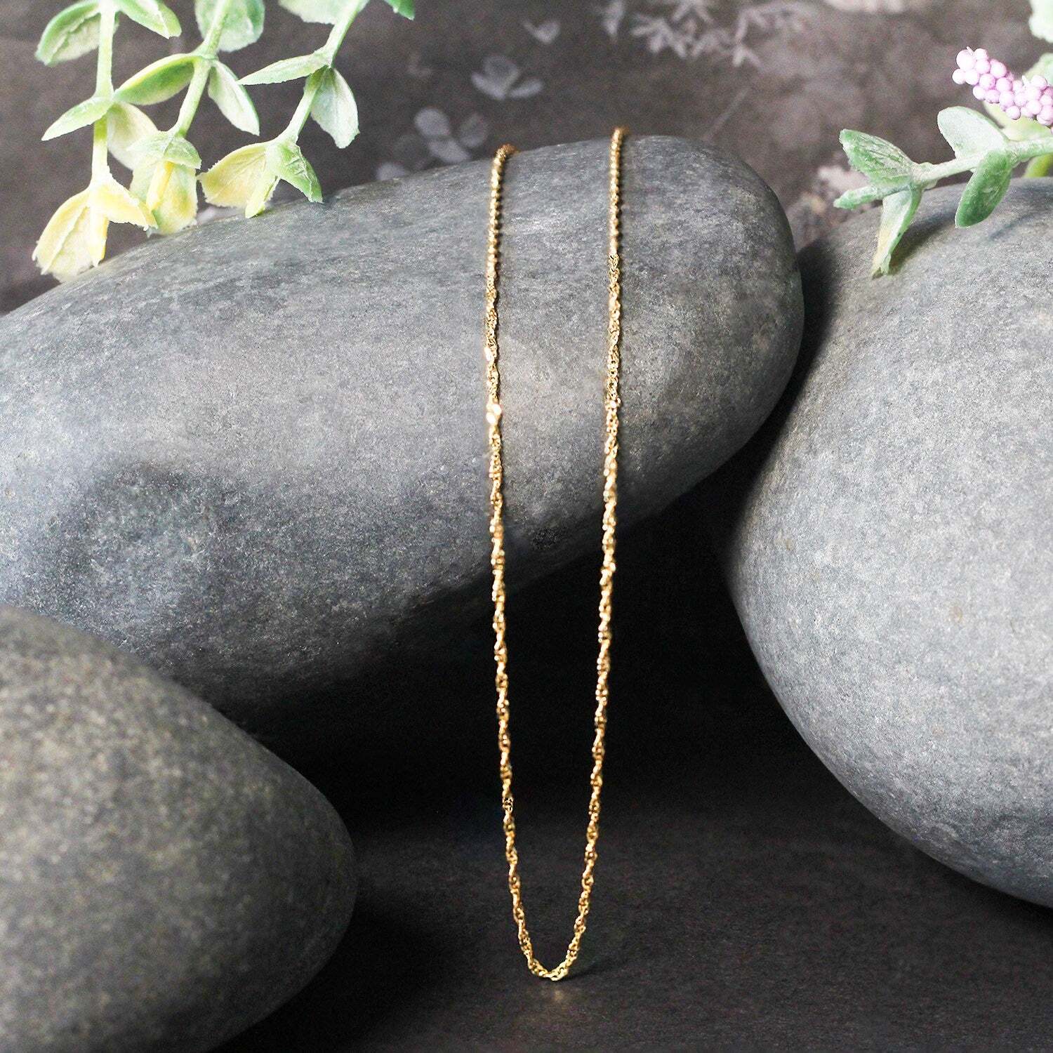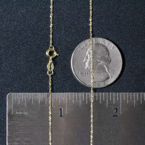 This Singapore chain comes in 10k yellow gold and has a width of1.10 millimeters.