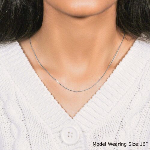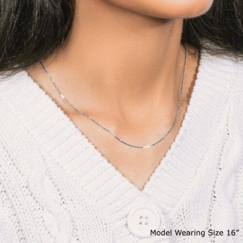 This classic box chain comes in 14k white gold and has a widthof 0.60 millimeters.