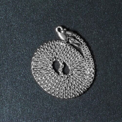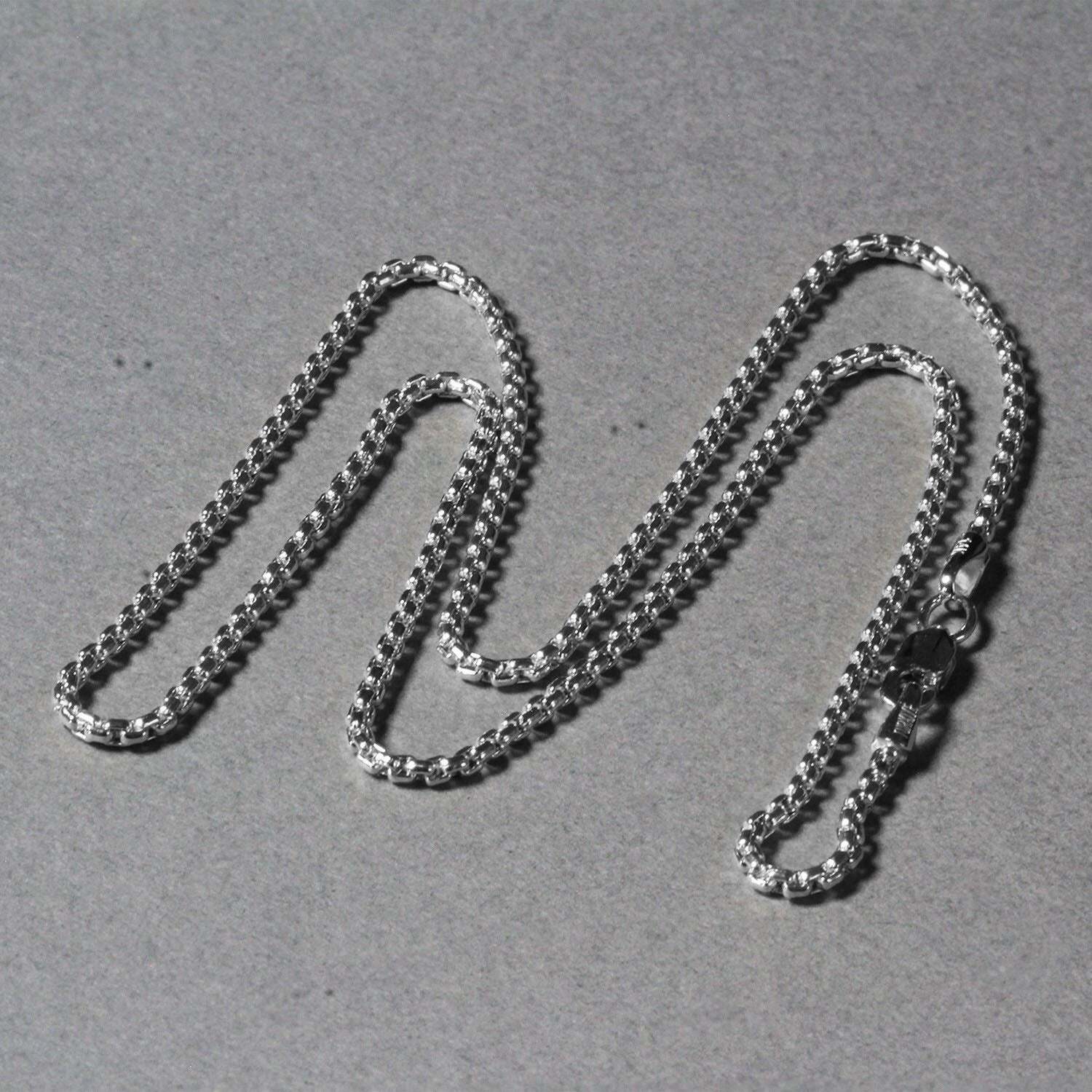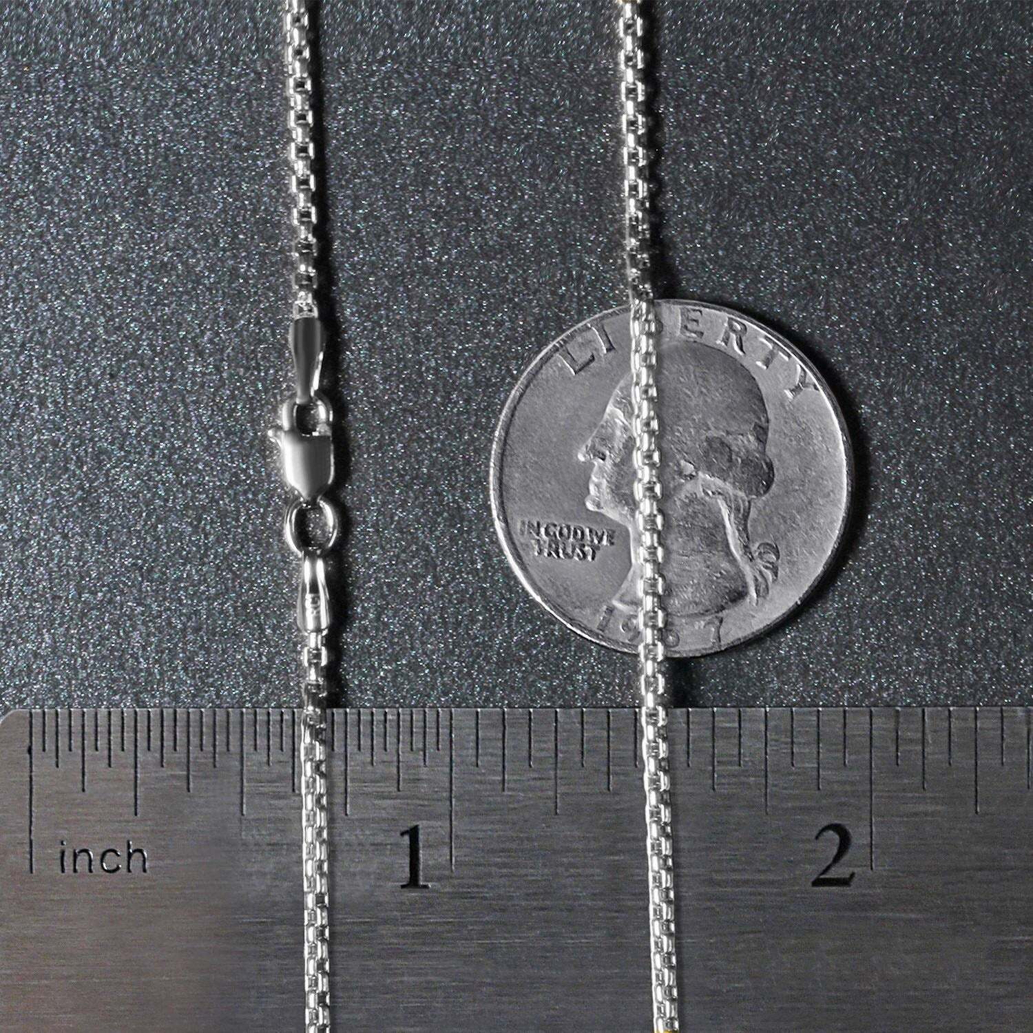 This round box chain comes in 14k white gold and has a width of1.8 millimeters.