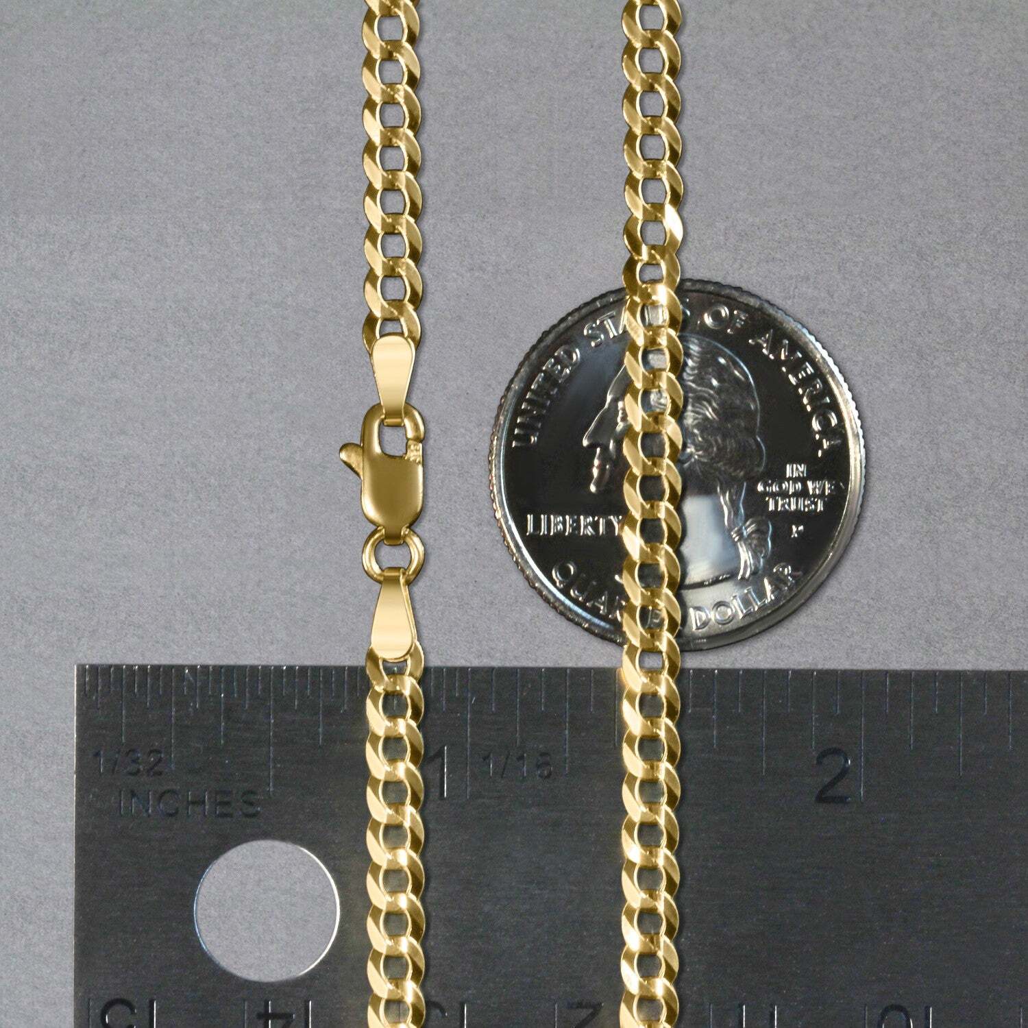 This curb link chain comes in 10k yellow gold and has a width of3.60 millimeters.