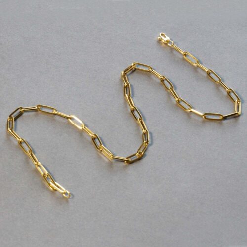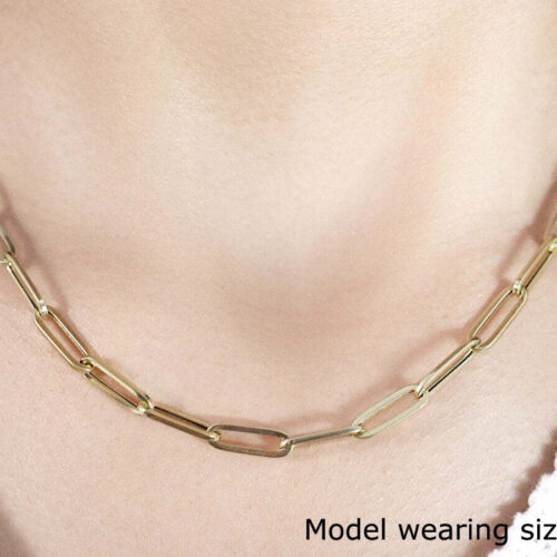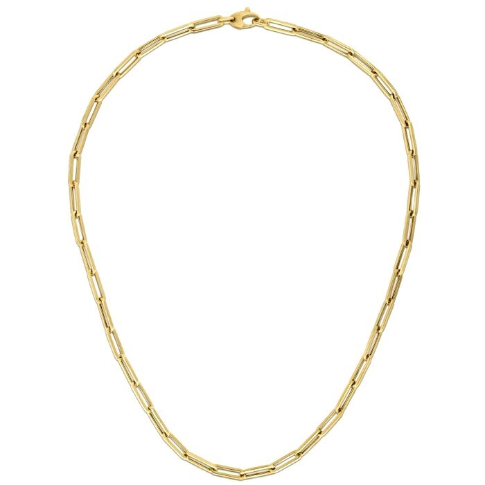 Bright 10K yellow gold is the star of this exquisitecontemporary lite paperclip chain. Chain has 4.2mm wide links andcloses with a lobster clasp.