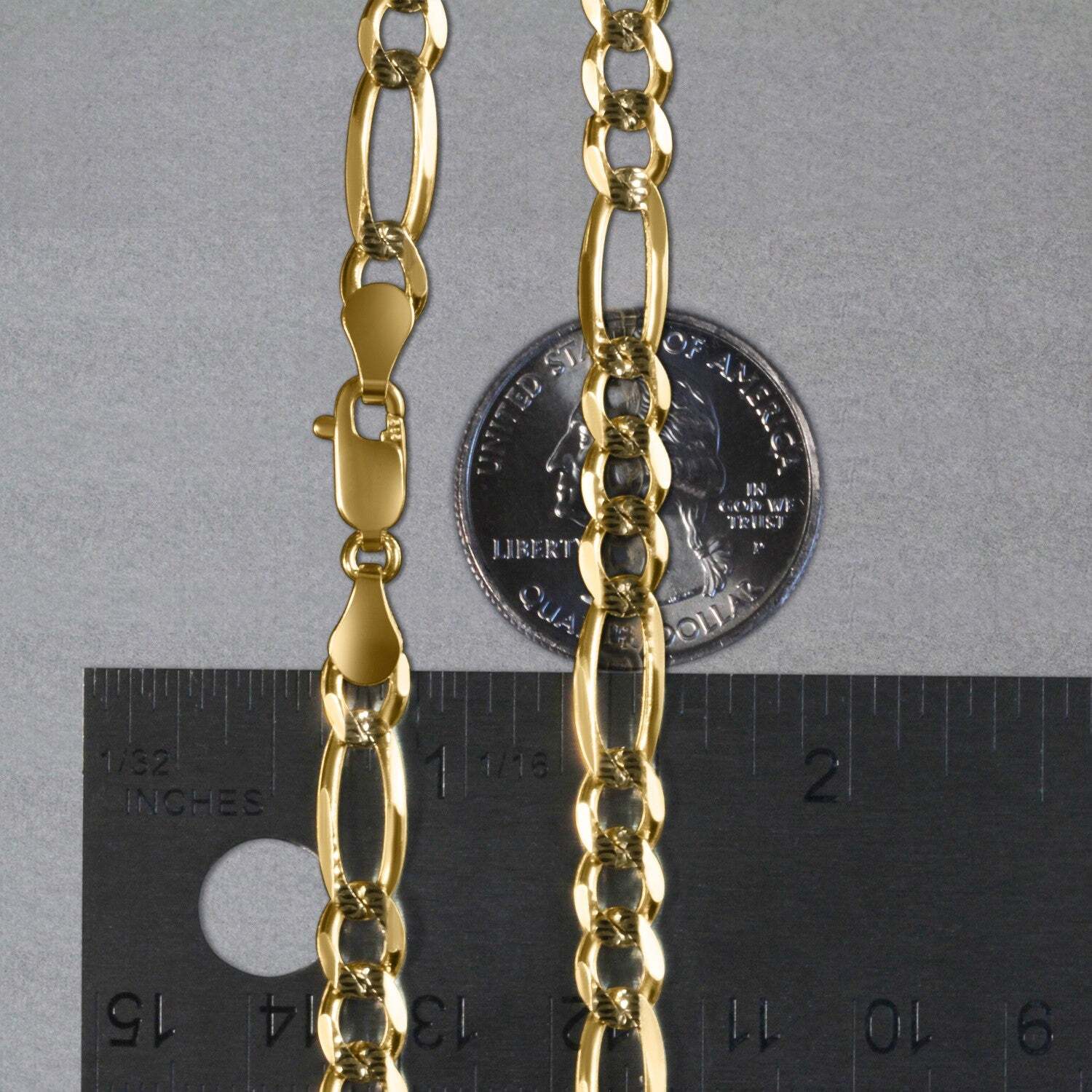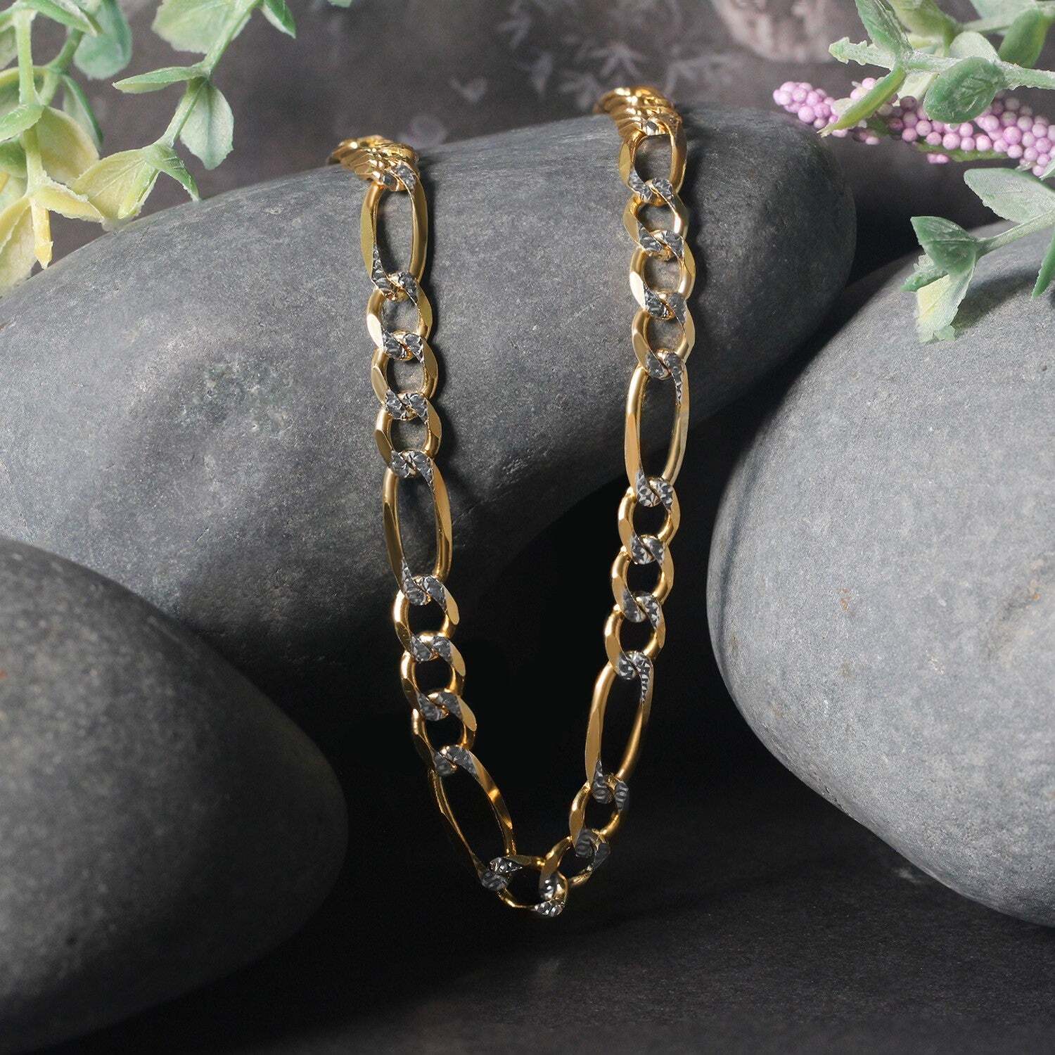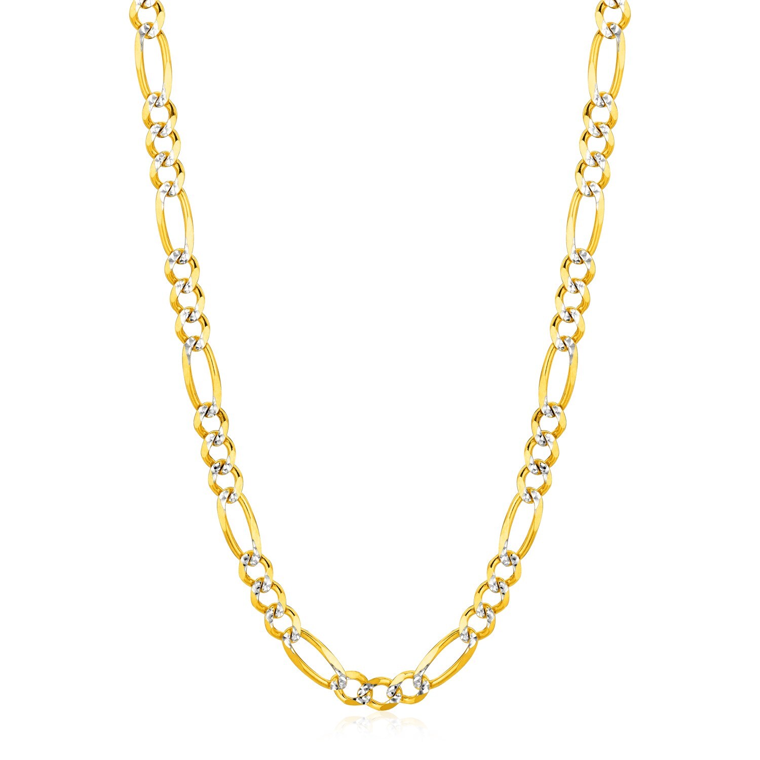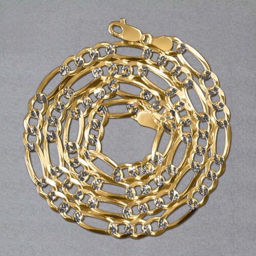 This solid pave figaro chain comes in 14K yellow gold and has awidth of 5.90mm.