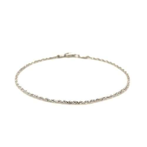 This solid diamond cut rope bracelet chain comes in 14k whitegold and has a width of 1.5 millimeters. Secured with a lobsterclasp.