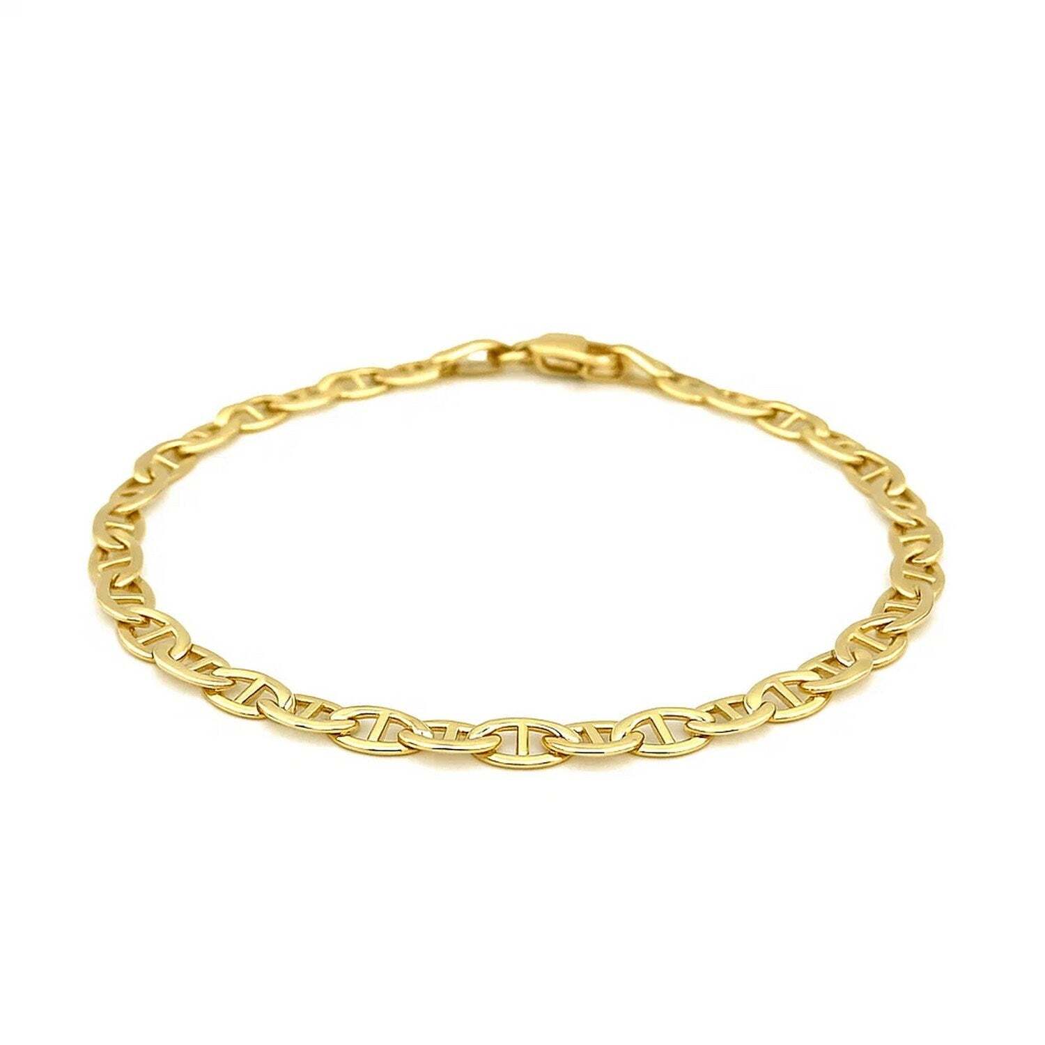This mariner link bracelet comes in 14k yellow gold and has awidth of 4.5 millimeters. Secured with a lobster clasp.