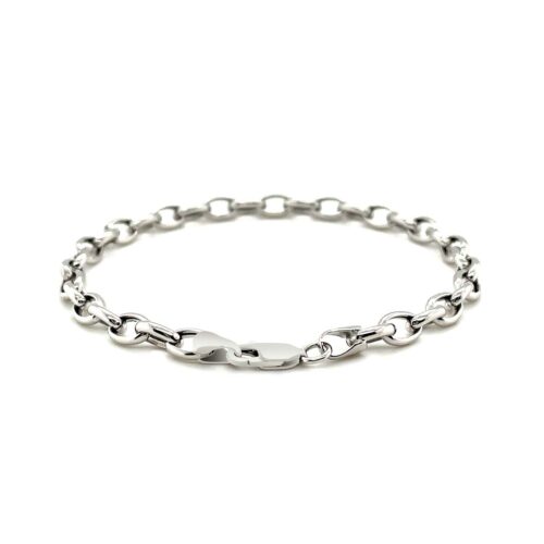 This oval rolo bracelet comes in 14k white gold and has a widthof 4.6 millimeters. Secured with a lobster clasp.