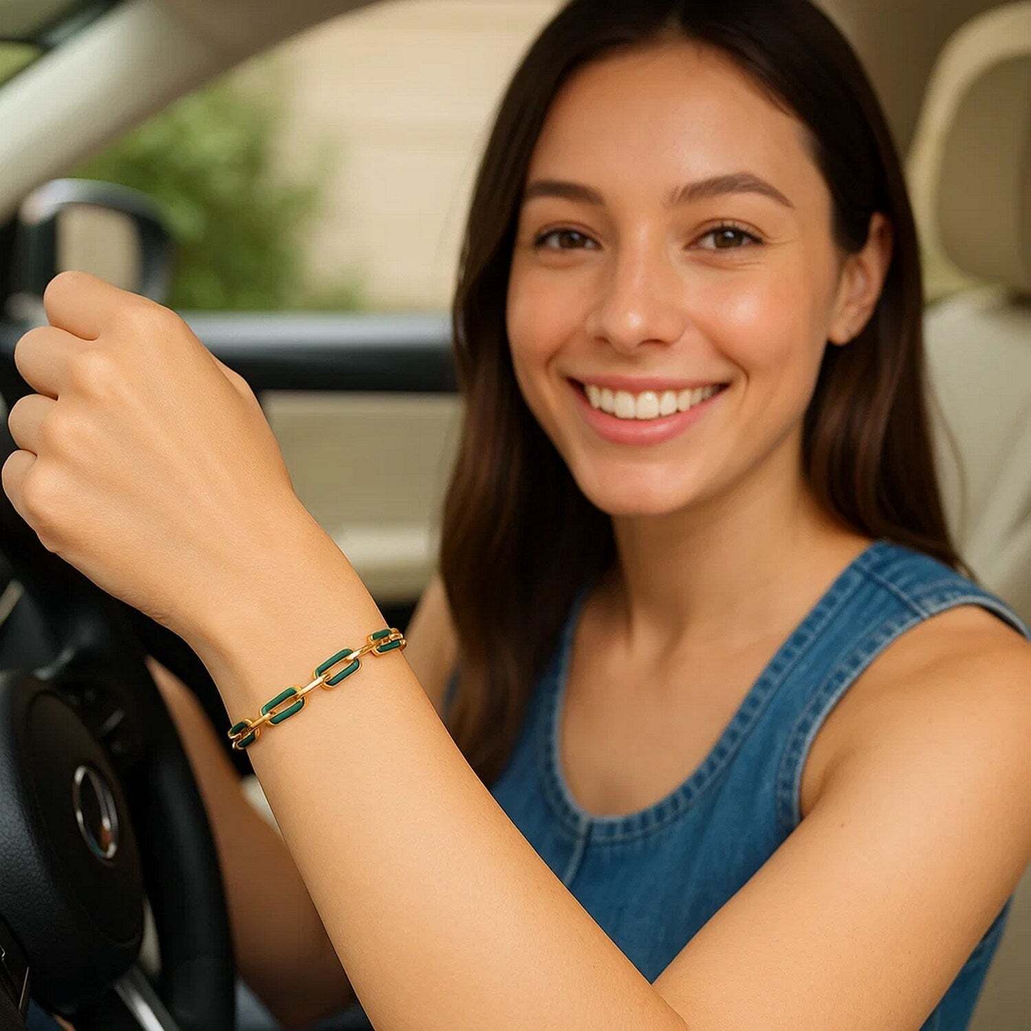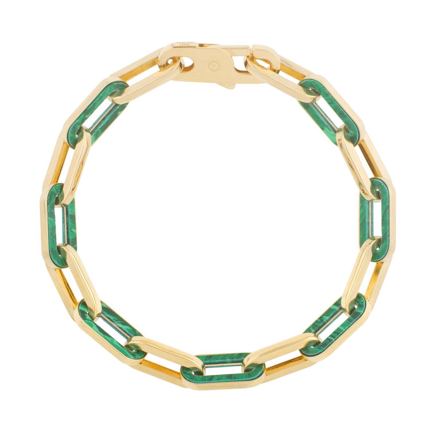 Size: 7.5 – 14k Yellow Gold Malachite Paperclip Gem Link Bracelet (7.00 mm)