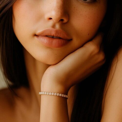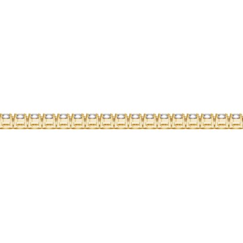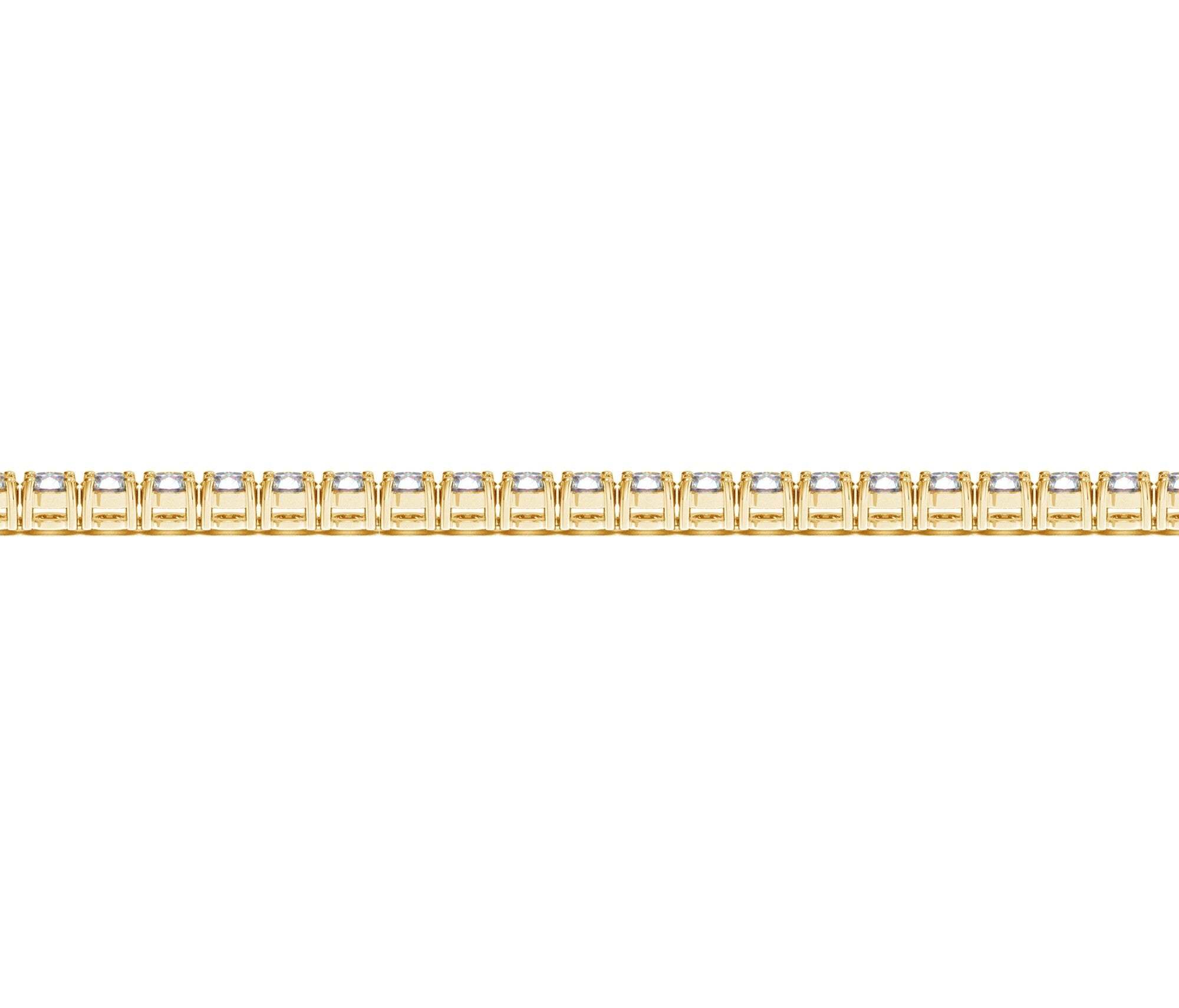 Classic four prong 4 carat total weight diamond tennis braceletshowcasing perfectly matched brilliant round cut lab grown diamondsset in 14k yellow gold.