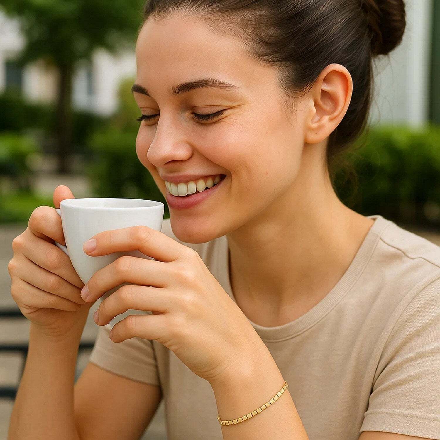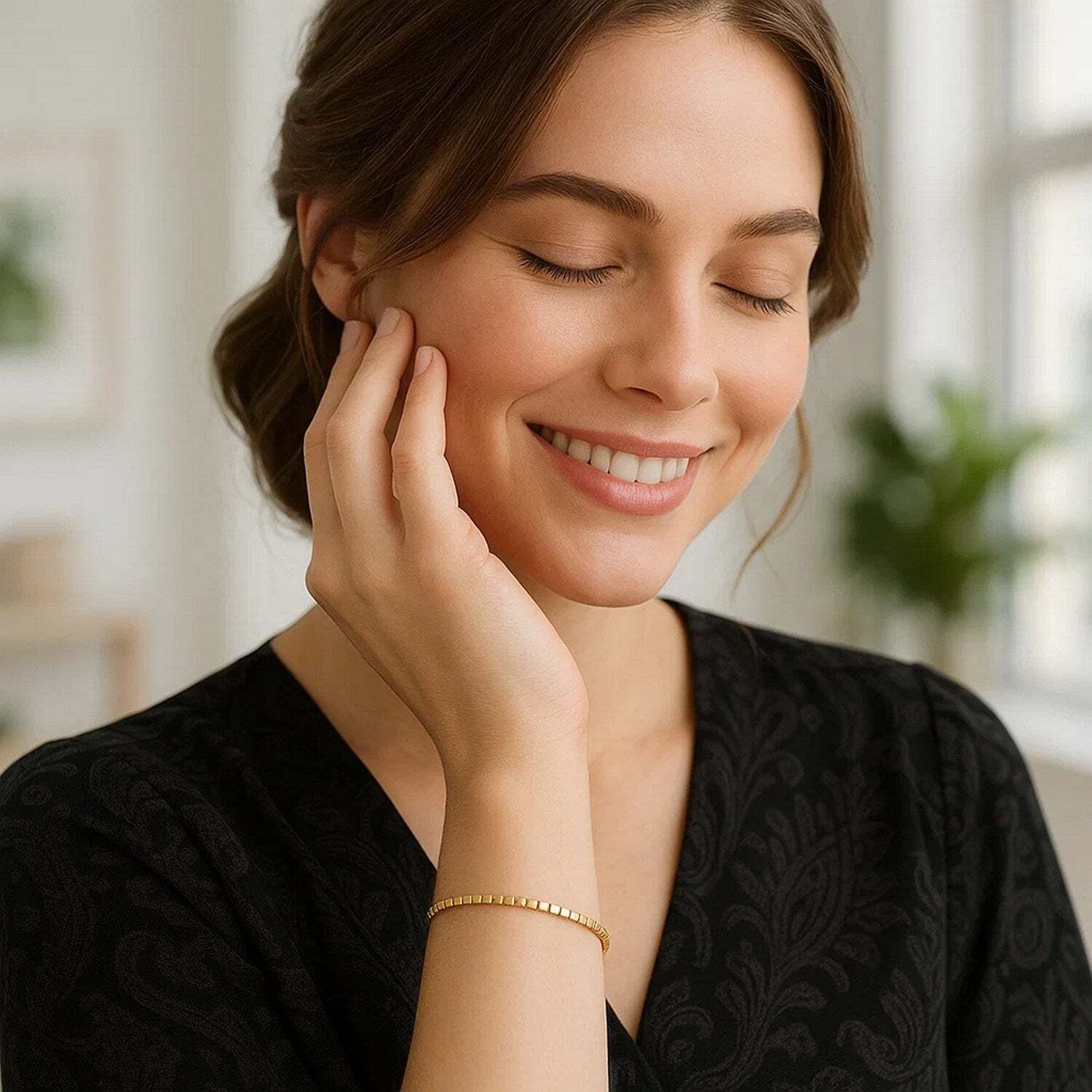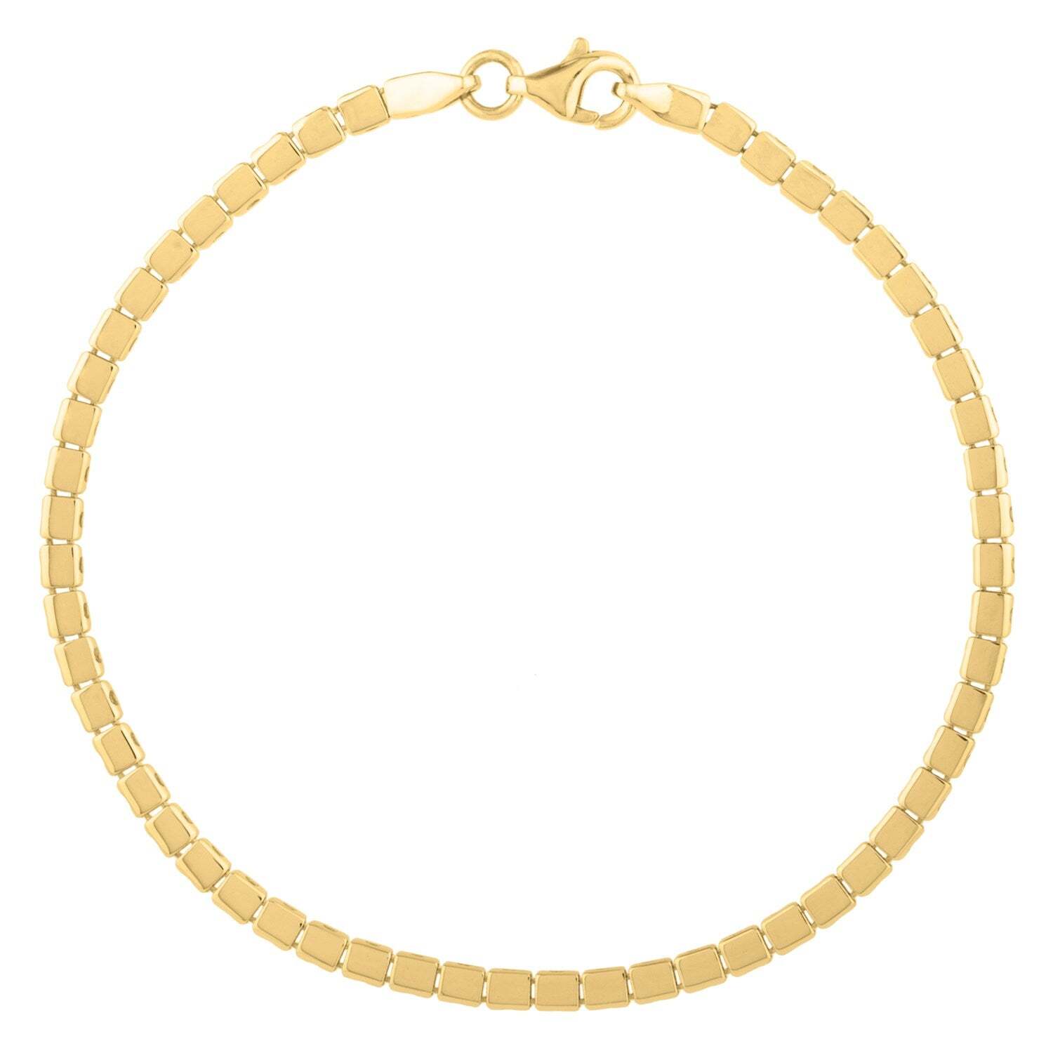 Embrace the allure of modern minimalism with this captivating14k yellow gold mini cube bracelet. Its design features a series ofsculpted mini cubes arranged in a rhythmic pattern that exudesgeometric precision and contemporary flair. The polished finishlends each cube a radiant glow, infusing the bracelet with a warm,luxurious charm.