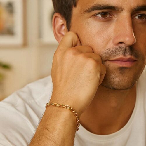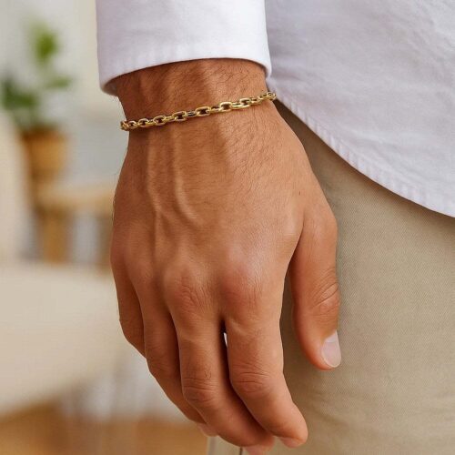 This french cable chain bracelet comes in 14k yellow gold andhas a width of 3.6 millimeters. Secured with a lobster clasp.