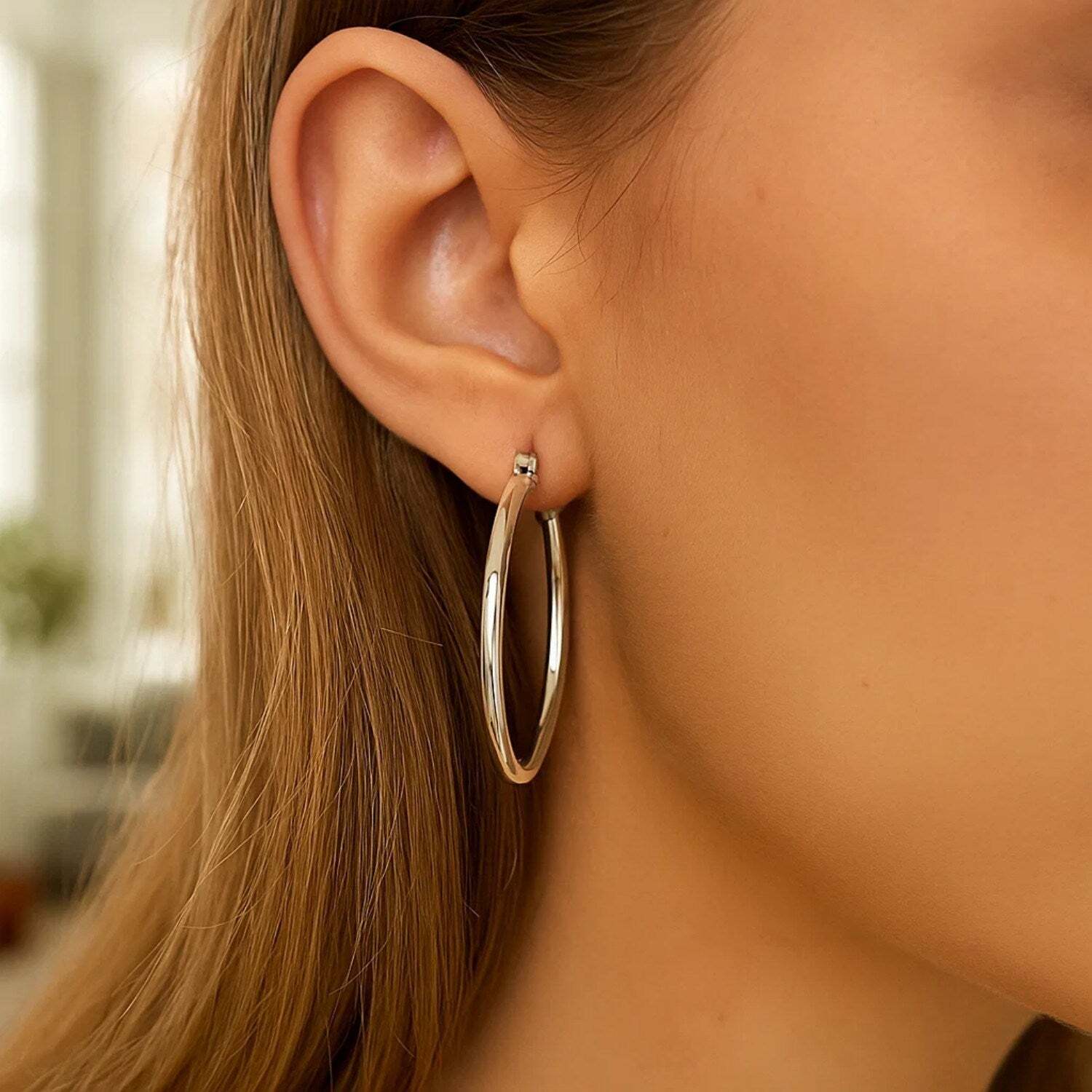 An eye-catching pair of hoop earrings is radiating captivatingallure. Designed in rhodium finished sterling silver and came withsnapbacks.
