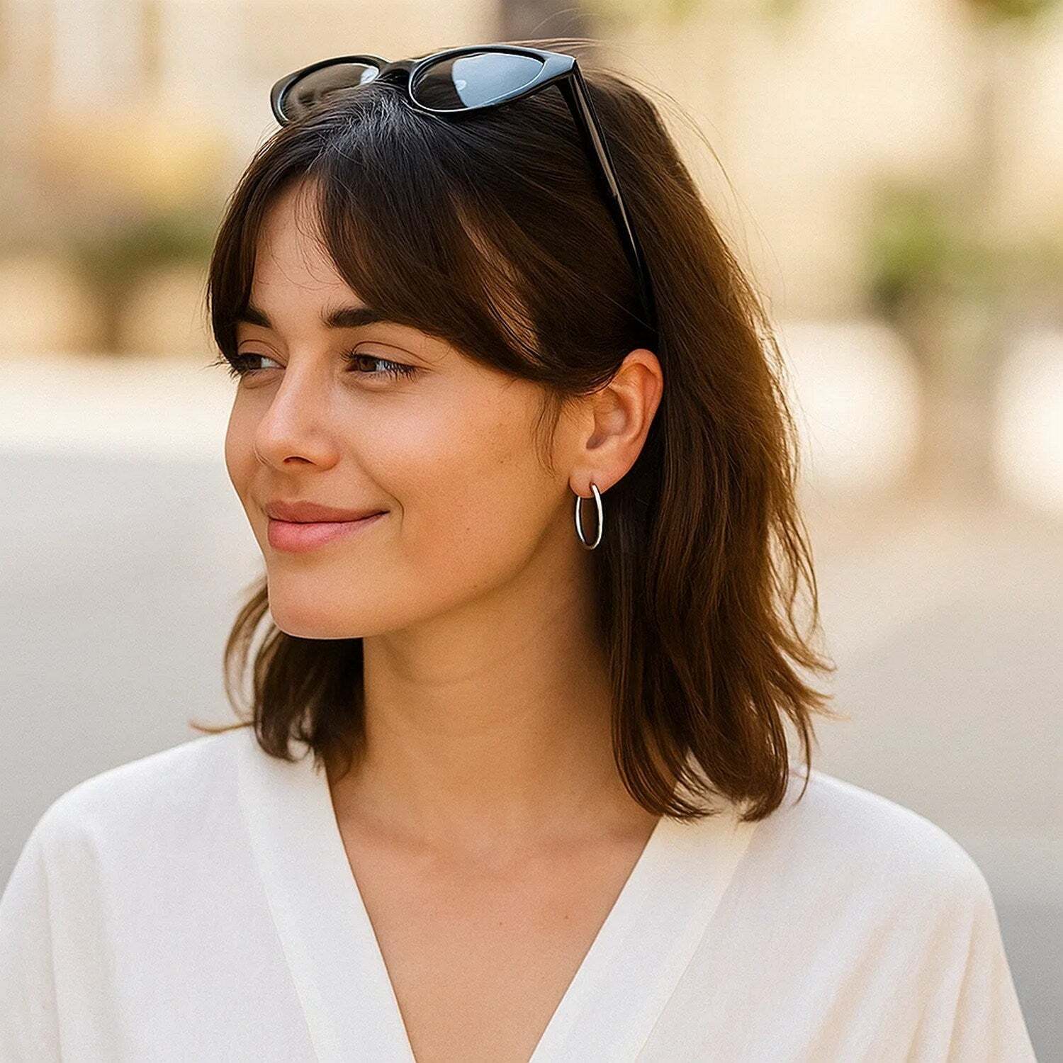Sterling Silver Rhodium Plated Thin and Polished Hoop Motif Earrings (2x25mm)